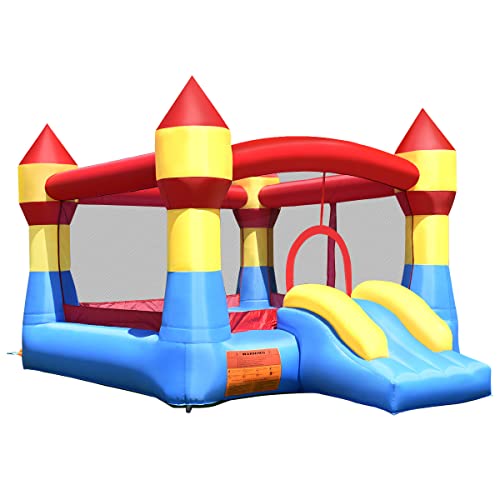 COSTWAY hoppborg med rutschkana och stort hoppområde, barn, hoppborg för inomhus och utomhus, inkl. Bärväska, reparationssats, 370 x 280 x 230 cm