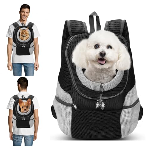 Navaris ryggsäck för hund eller katt upp till 7 kg – vadderad hundryggsäck kattryggsäck – 37 x 33 x 24 cm hundbärväska – bärväska för fram och bak – grå