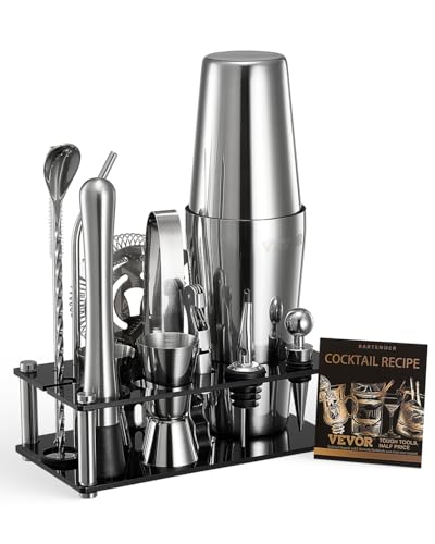 VEVOR Cocktail Shaker Set, 14-delar barverktyg i rostfritt stål med akrylstativ, Boston Bartender Kit tillbehör | mixsked, stänkare, jiggers, sil, sprithäll, istång, korkskruv, silver