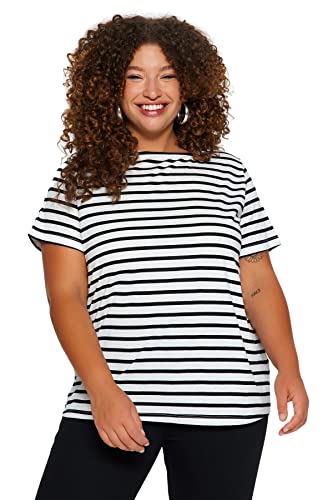 Trendyol Dam normal passform bas båt hals stickad plusstorlek t-shirt, svart vit, 4XL, Svart vit, 4XL/Stor