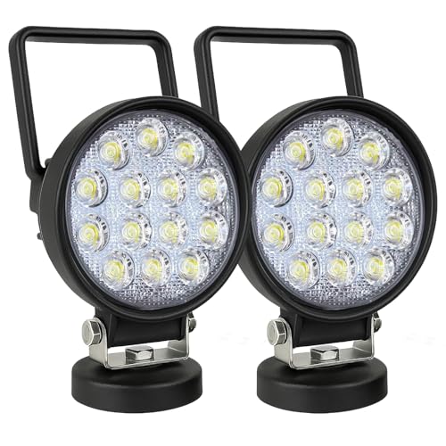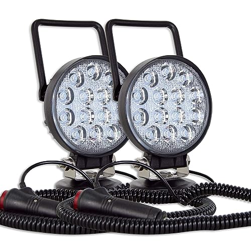 Willpower 2 stycken LED-arbetsstrålkastare med magnetisk bas, 4,5 tum 42 W bärbar rund LED strålkastare för bil grävmaskin släpvagnar traktorer lastbil SUV offroad