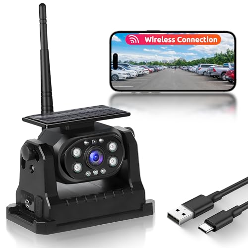 Rimoody WiFi solar trådlös backkamera, magnettrådlös backkamera med 10 000 mAh uppladdningsbart batteri, mörkerseende, IP68 vattentät, bakåthjälp, magnetisk bas, för lastbil/bil/husbil