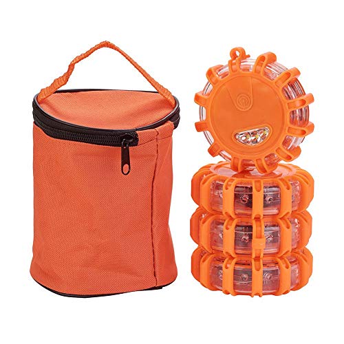 XhuangTech 4-pack LED-vägutsvängningar, nödskivfyr med 9 blixtlägen, magnetisk bas och krok förvaringsväska vägsida blinkande varningslampor för bil lastbil båtar (4)