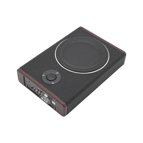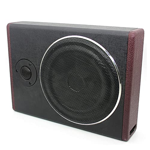 BuRuiYoten Bil undersäte subwoofer aktiv baslåda kompakt bil ljud bil aktiv woofer bas med smal metallhölje rostfritt stål låda högtalare woofer horn nätskydd aktiv stereo förstärkare högtalare