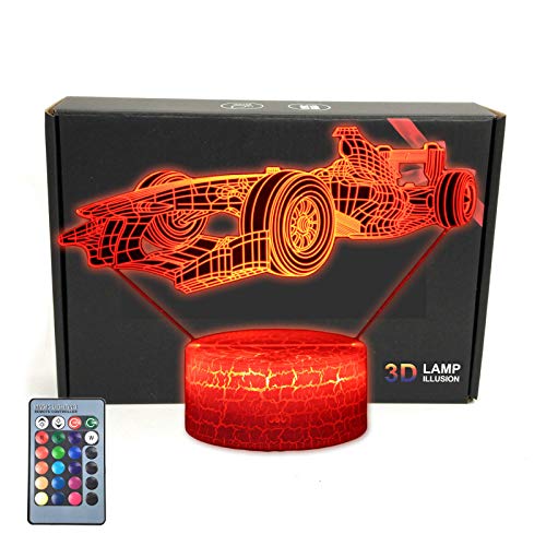 MARZIUS Racersport bil 3D-illusion bord roadsterform nattlampa gratulationskort lysande bas 16 färger ändras fjärrkontroll