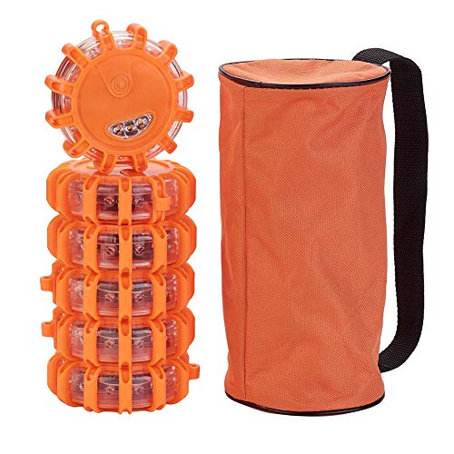 XhuangTech 6-pack LED-vägutsvängningar, nödskivfyr med 9 blixtlägen, magnetisk bas och krok förvaringsväska vägsida blinkande varningslampor för bil lastbil båtar (6)