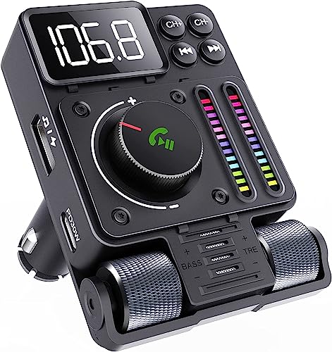 GizmoVine Bluetooth 5.3 FM-sändare, bilradio adapter med PD 30 W & USB 12 W, cigarettändare med MP3-spelare bil, stöder 64 GB USB-enhet, accenter och bas, handsfree-samtal