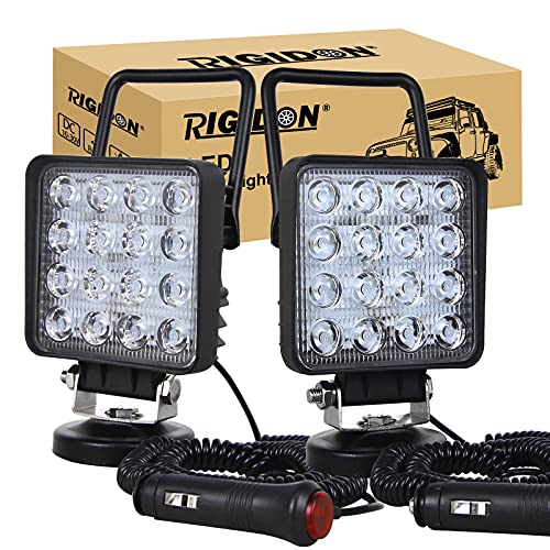 RIGIDON 2 st LED-arbetsljus med magnetisk bas, 4 tum 10 cm 48 W 12 V 24 V led strålkastare, offroadbelysning för bil SUV ATV, traktor, lastbil, 4 x 4, båt, 6000 K led söktstrålkastare, arbetsljus