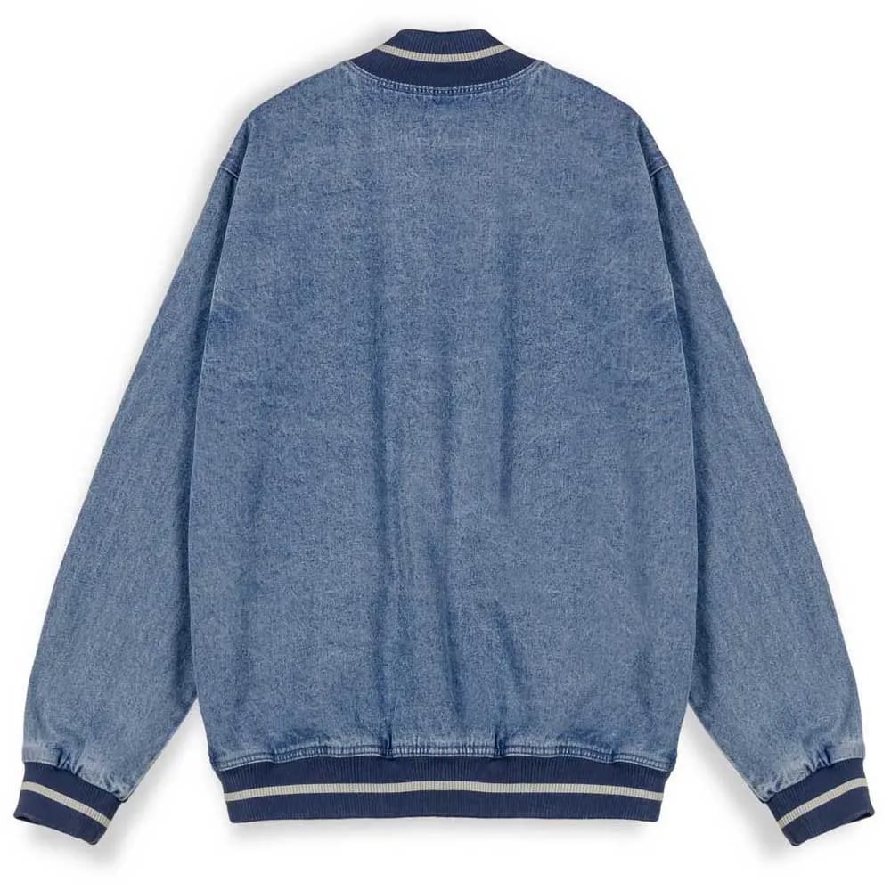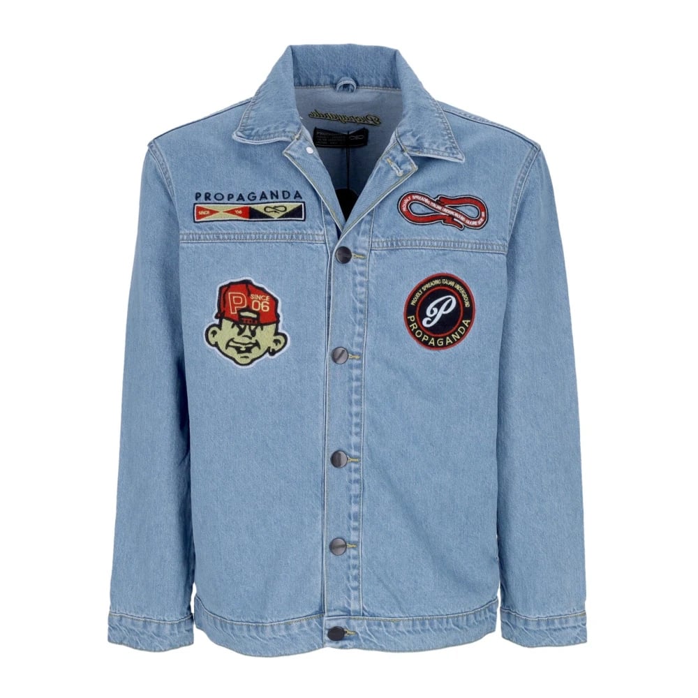 Propaganda, Jackor , Herr, S, Denim, Blå Denim Baseball Jacka med Patch Logos