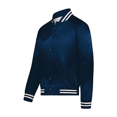 Augusta Sportswear Augusta Satin Baseball Jacka/Randig Trim, Marinblå/vit, 3XL