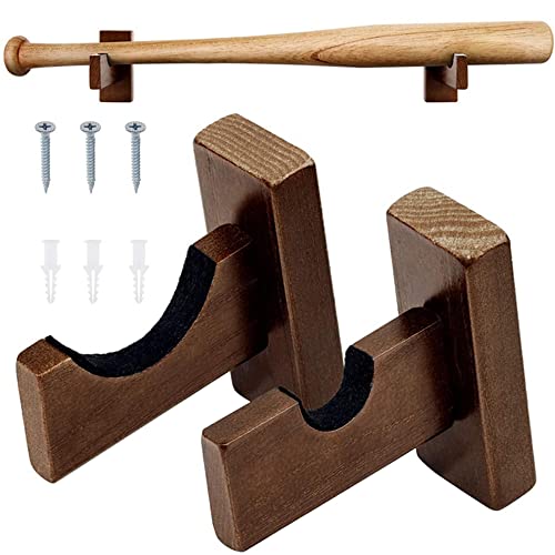 Lxoraziy Väggfäste för basebollträ, 2 delar softboll, fladdermus, väggmontering, horisontellt rackfäste för baseboll, softball, hockeyklubba, visningsfodral (brun)