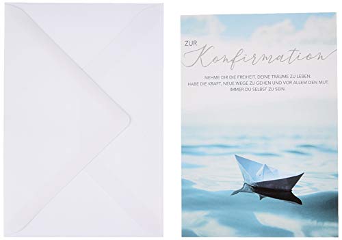 Perleberg kort för konfirmation – Basic Classic Collection – Gratulationskort med båtmotiv – konfirmationskort med matchande kuvert i 11,6 x 16,6 cm
