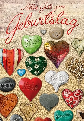 Perleberg Högkvalitativt födelsedagskort från Basic Classic Collection med färgglatt hjärtmotiv – kort till födelsedag med kuvert – födelsedagskort i premiumkvalitet 11,6 x 16,6 cm