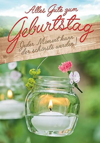 Perleberg högkvalitativt födelsedagskort från Basic Classic Collection ljusglas – vackert kort för födelsedag med kuvert – födelsedagskort i premiumkvalitet 11,6 x 16,6 cm