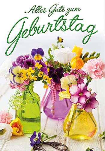 Perleberg Högkvalitativt födelsedagskort från Basic Classic Collection med blomvasmotiv – blommigt kort för födelsedag med kuvert – födelsedagskort i premiumkvalitet 11,6 x 16,6 cm