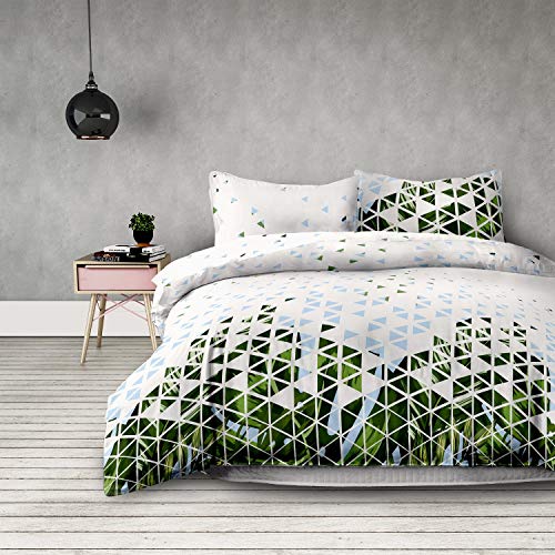 AmeliaHome 4 delar, 2 x sängkläder, 155 x 220 cm, med 2 örngott, 80 x 80 cm, geometriskt mönster, blommig, mikrofiber, dragkedja, Basic Collection, explosion, vit, grön
