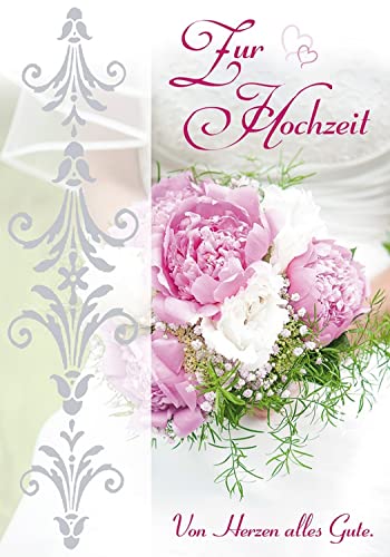 Perleberg Bröllopskort med blommotiv och text – Basic Classic Collection – kort till bröllop i premiumkvalitet – kärleksfull present till bröllop med kuvert – 11,6 x 16,6 cm