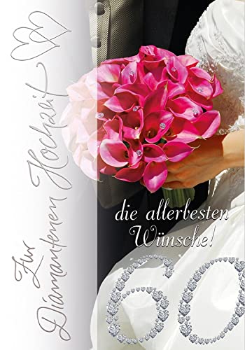 Perleberg Diamantbröllopskort med blommotiv – Basic Classic Collection – kort till diamantbröllop i premiumkvalitet – kärleksfull present till bröllop med kuvert – 11,6 x 16,6 cm