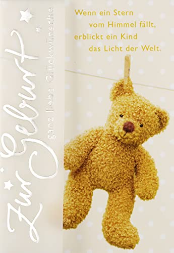 Perleberg Födelsekort med teddy-motiv – Basic Classic Collection – högkvalitativt kort för födseln för flickor och pojkar – kärleksfull present till födseln med kuvert – 11,6 x 16,6 cm