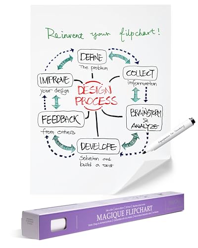 EASYCLING® Magique blädderblock folie, elektrostatisk film för alla hårda ytor, fäster utan lim eller magneter, 25 ark och 1 brädmarkör inkl. 60 cm x 80 cm (blädderblock Basic)