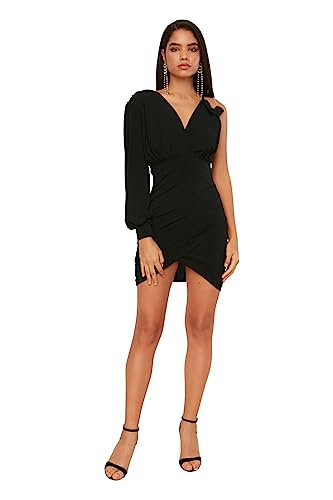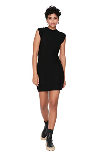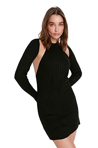 TRENDYOL Dam förtrollande Mini Basic Regular Fit stickad klänning, svart, 34