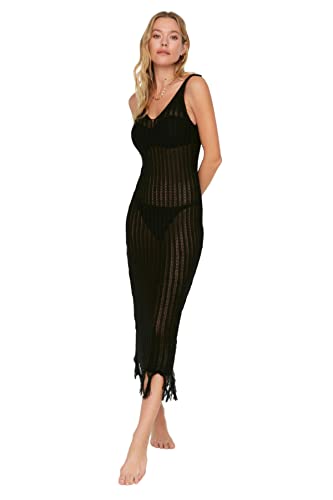 TRENDYOL Dam Beachwear Midi Basic regular fit jersey klänning, svart, L