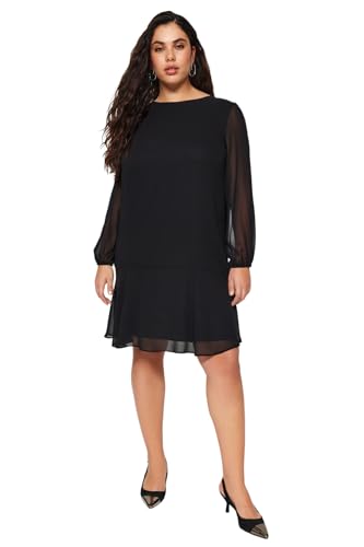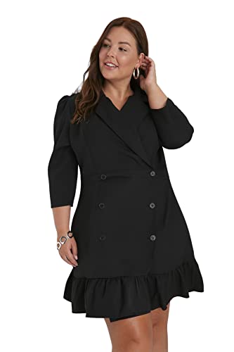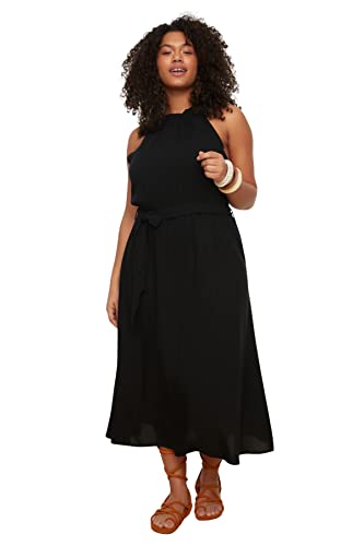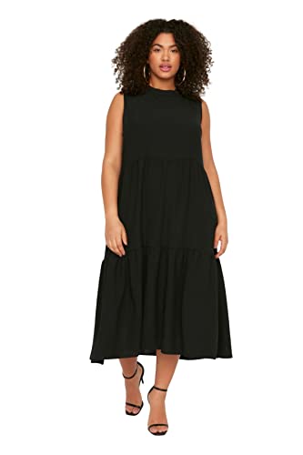 Trendyol kvinnor plus size midi basic normal vävd plus size klänning, Svart, 4XL (Stor)