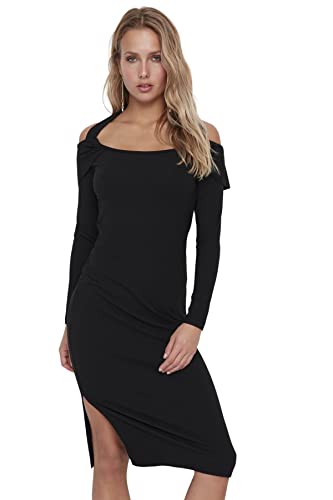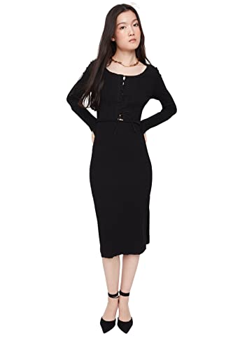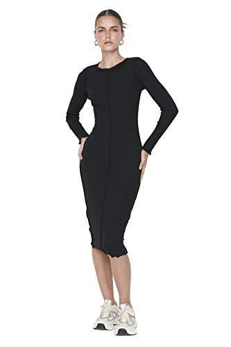 Trendyol Midi Basic smal stickad klänning för kvinnor, Svart, S