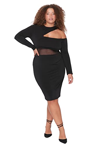 TRENDYOL Kvinnor Stor Storlek Mini Basic Slim Fit Mesh Plus Storlek Klänning, Svart, 5XL stor