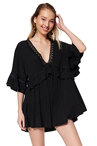 Trendyol Dam Strandkläder Mini Basic Normal Vävd Klänning, Svart, 36 SE