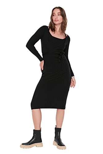 TRENDYOL Dam stickad klänning basic slim fit stickad klänning, svart, S