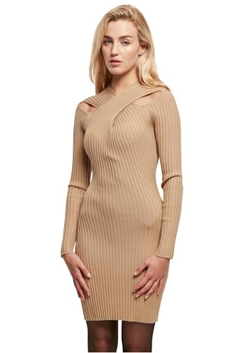 Urban Classics Dam korsad ribbstickad klänning dam kort klänning svart basic, streetwear, Unionbeige, 4XL