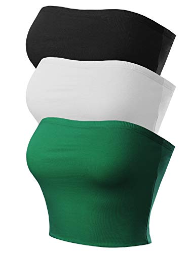 MixMatchy Women's Strapless Tube Tops Basic Bandeau Crop Sleeveless Backless Casual Sexy Going Out Summer 2025 3PACK - Black/White/Green M