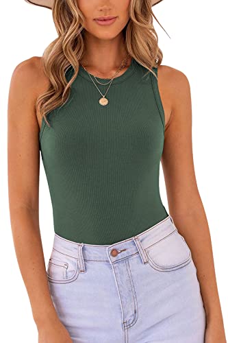 MISSJOY Women's Basic Bodysuit Soild Ribbed Tank Tops Jumpsuits