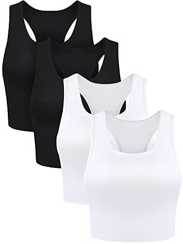 Boao 4 Pieces Basic Crop Tank Tops Sleeveless Racerback Crop Top for Women (Black, White, Small)