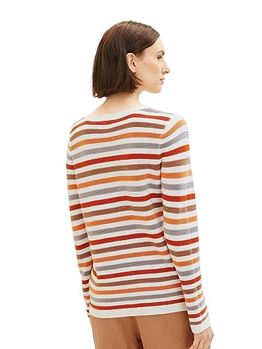 TOM TAILOR basic stickad tröja för kvinnor av ekologisk bomull, 32441 - Orange ottomansk randig, S