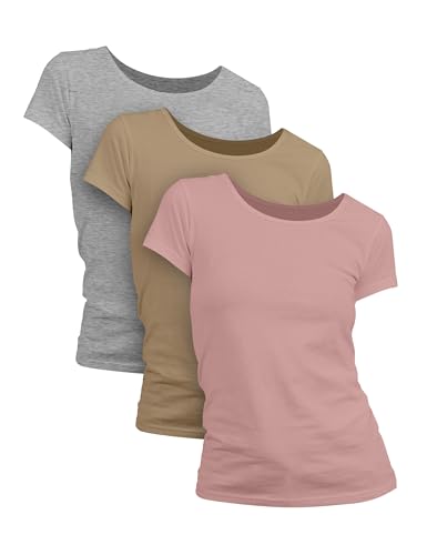 Basic Treasure 2/3-pack t-shirt dam, kortärmad damskjorta eller långärmade tröjor för kvinnor, 100 % bomull t-shirt, 3 x mix – kortärmad, XL