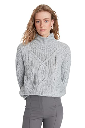 Trendyol Dam Regular Basic Polokrage Stickat Tröjor, Grå, M