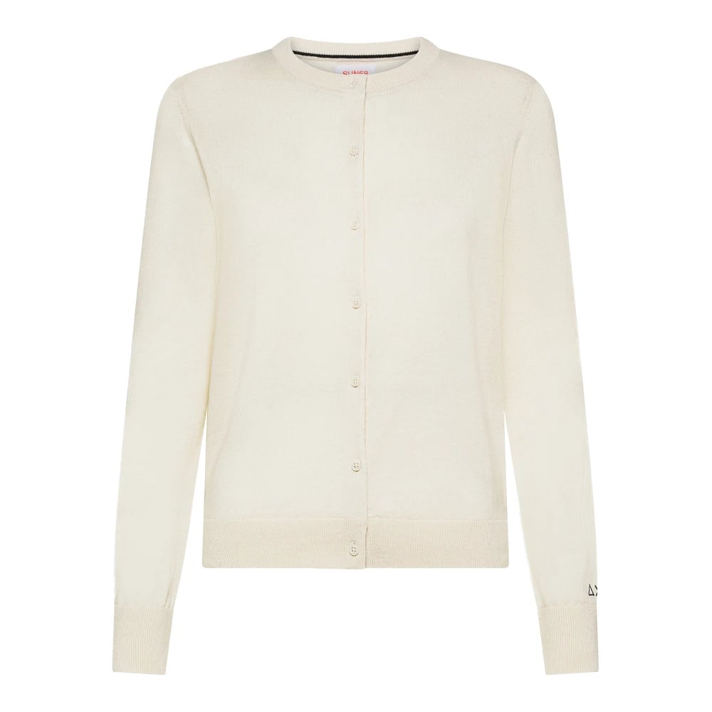 Sun68, Stickade Tröjor , Dam, L, Bomull, Rundhals Basic Kofta