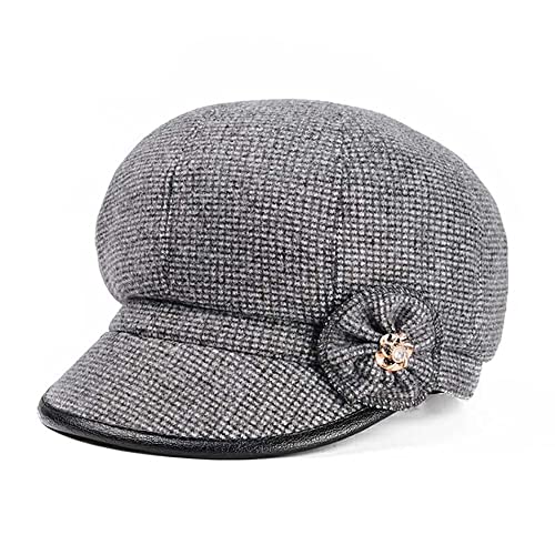 Xilery Dam bomull ull blandning vinter varm Newsboy keps basker hatt med PU-läder framsida, Grå, en storlek