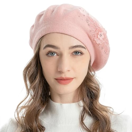 ZLYC Fransk basker för kvinnor, vändbar enfärgad kashmir mosaik varm basker keps för flickor, Blomma rosa, en storlek