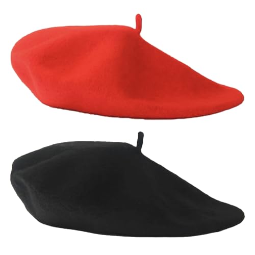 MUNSKT Set med 2 blandade franska baskrar för herr och dam, vintage fransk basker, vinter- och hösthatt för kvinnor, klassisk enfärgad basker, elegant, mjuk och stretchig keps, Färg: röd, One size