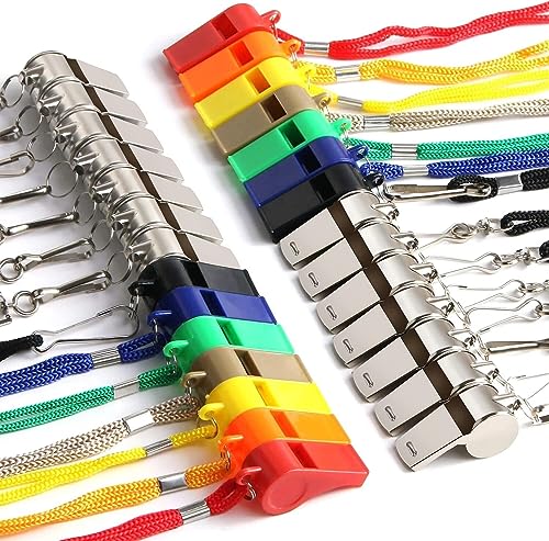 SANNIX 28-pack coach visselpipor med snodd plast och rostfritt stål visselpipor bulk för basket fotboll gym nödsituation