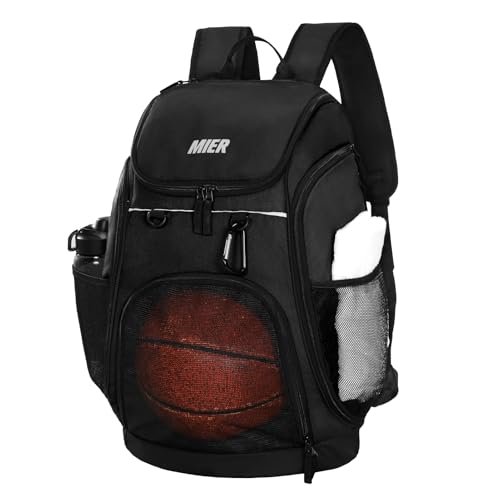 MIER Stor sportryggsäck med ficka för bad, utomhus, gym, basket, 40 l, svart