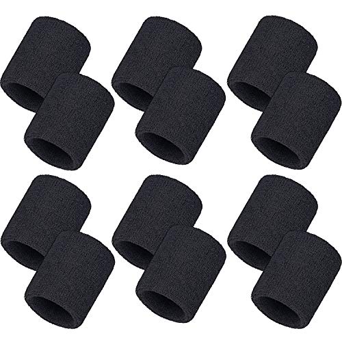 12-pack svettband sport armband bomull svettband för män och kvinnor, bra för tennis, basket, löpning, gym, träning (svart)