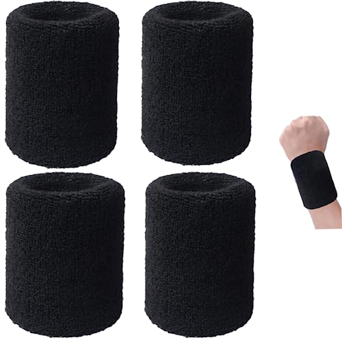 YOFASEN 2 Par/4 St Svarta Armband Sport Svettband För Män Kvinnor - Tjockna Elastiska Handledssvettband Armband Handledsskydd för Tennis, Basket, Löpning, Gym