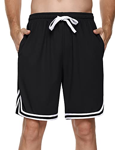 SHEKINI Korta sportbyxor för män med dragsko, elastisk midja, snabbtorkande byxor, löparbyxor, Activewear, träningsbyxor, joggingbyxor, herr, sport, atletiska shorts för fitness, gym, basket, svart,