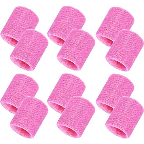 12-pack svettband sportarmband bomull svettband för män och kvinnor, bra för tennis, basket, löpning, gym, träning (rosa)