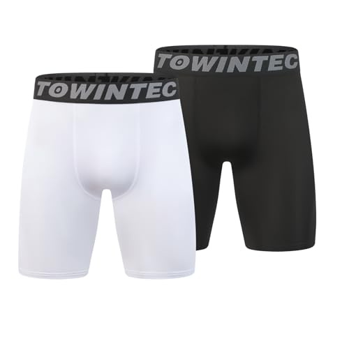 Towintec Kompressionsshorts för barn ungdom kompressionsbas andas grundläggande snabbtorkande träning löpning gym basket baseboll sport underkläder, Svart + vit, 14 år