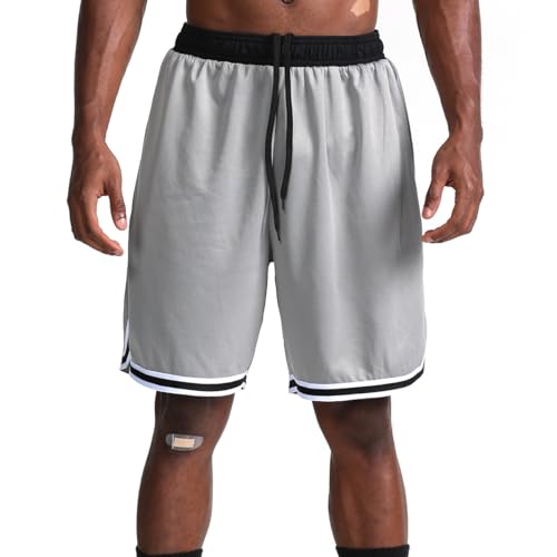 SHEKINI Korta sportbyxor för män med dragsko, elastisk midja, snabbtorkande byxor, löparbyxor, Activewear, träningsbyxor, joggingbyxor, herr, sport, atletiska shorts för fitness, gym, basket, GRÅ, XXL